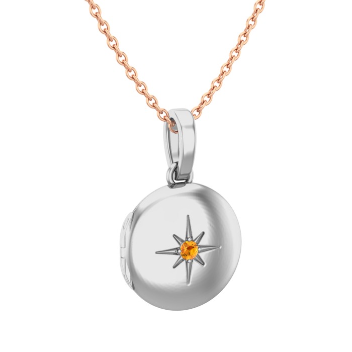 Sitrin 8 ayar beyaz altın kolye (40 cm rose altın rolo zincir)