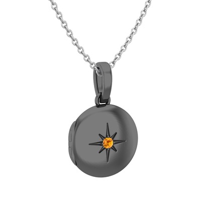 Sitrin 925 ayar siyah rodyum kaplama gümüş kolye (40 cm beyaz altın rolo zincir)
