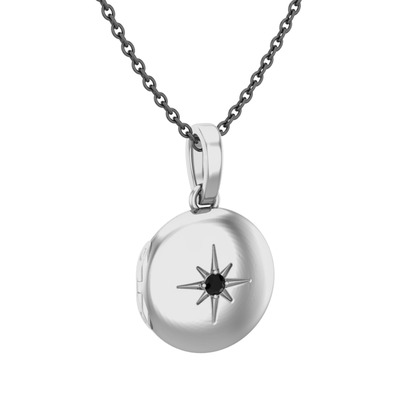 Siyah zirkon 14 ayar beyaz altın kolye (40 cm gümüş rolo zincir)