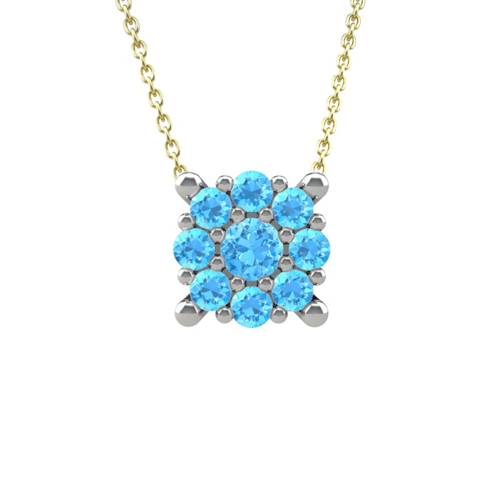 Akuamarin 14 ayar beyaz altın kolye (40 cm altın rolo zincir)