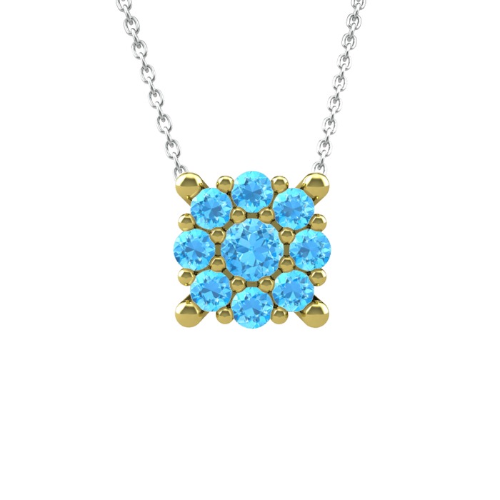 Akuamarin 18 ayar altın kolye (40 cm beyaz altın rolo zincir)
