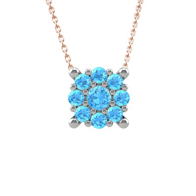 Akuamarin 8 ayar beyaz altın kolye (40 cm rose altın rolo zincir)