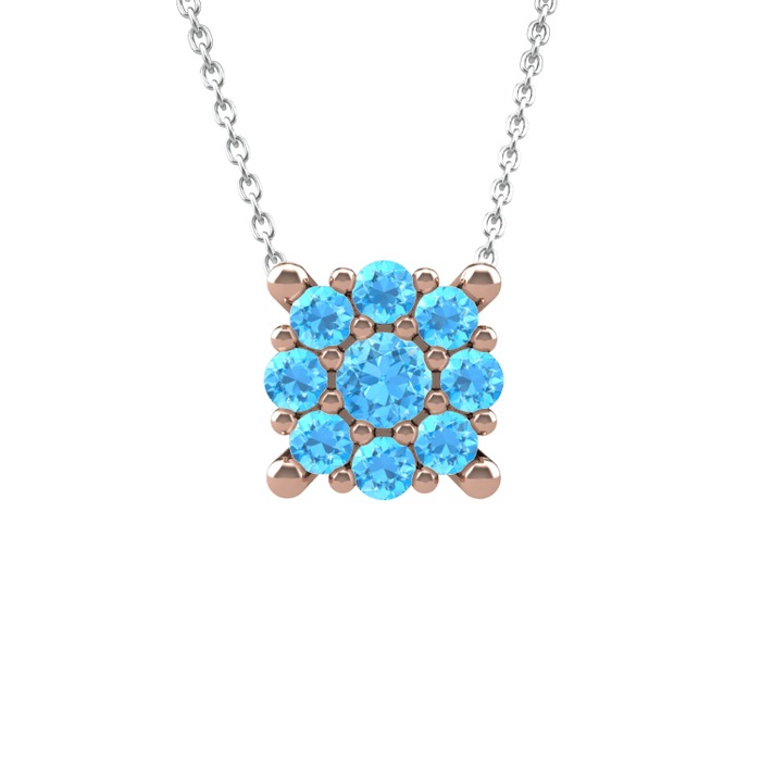 Akuamarin 8 ayar rose altın kolye (40 cm beyaz altın rolo zincir)