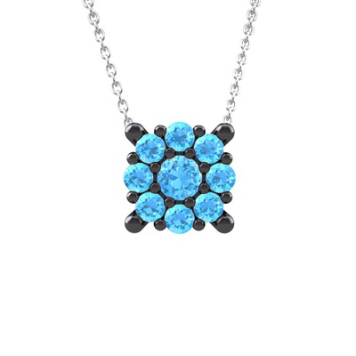 Akuamarin 925 ayar siyah rodyum kaplama gümüş kolye (40 cm beyaz altın rolo zincir)