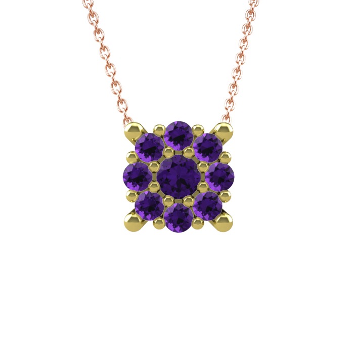Ametist 14 ayar altın kolye (40 cm gümüş rolo zincir)