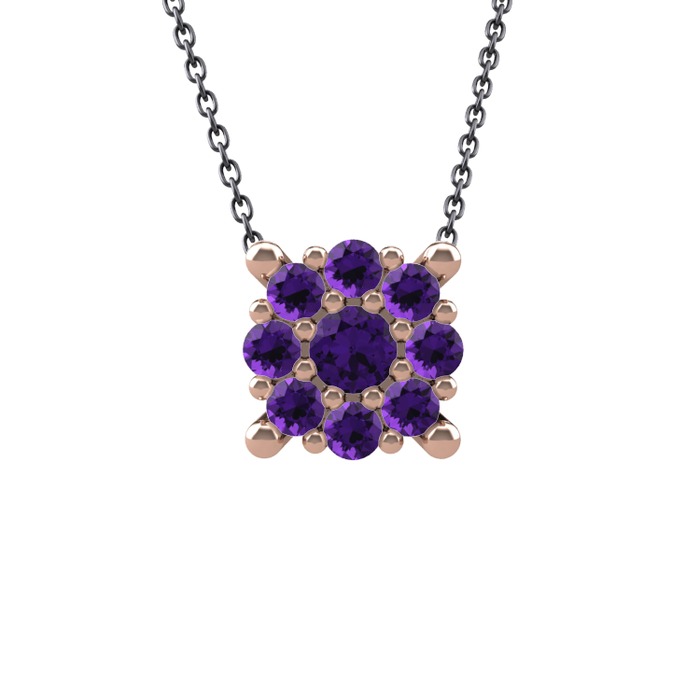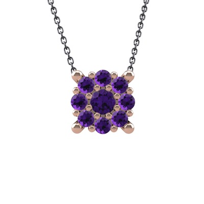 Ametist 14 ayar rose altın kolye (40 cm gümüş rolo zincir)