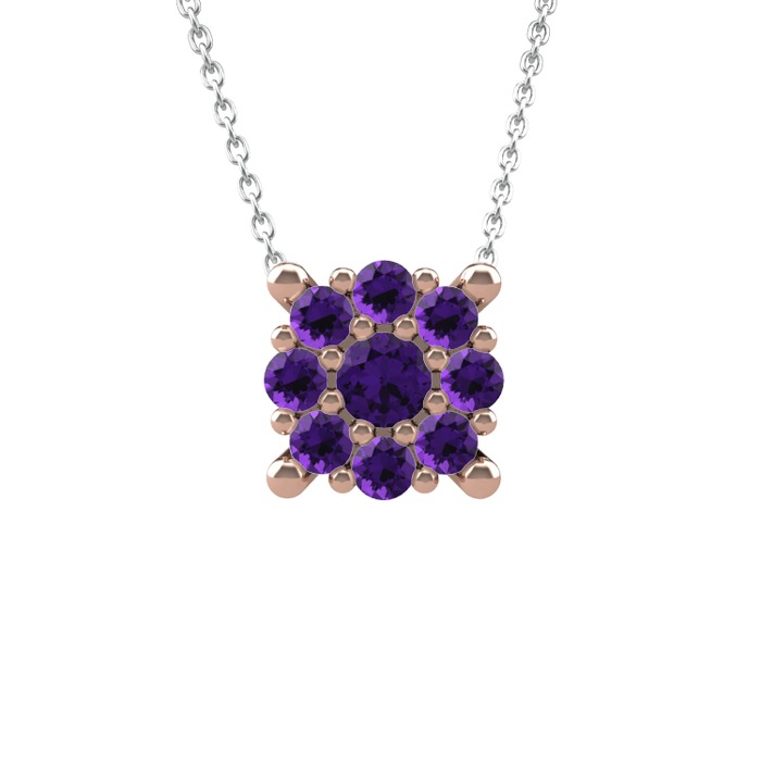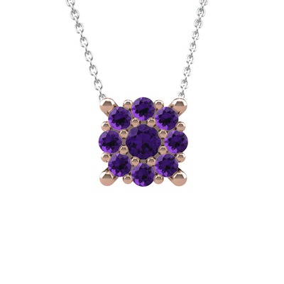 Ametist 18 ayar rose altın kolye (40 cm gümüş rolo zincir)
