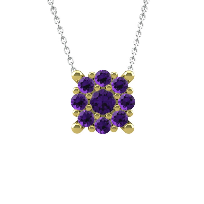 Ametist 925 ayar altın kaplama gümüş kolye (40 cm beyaz altın rolo zincir)