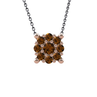 Dumanlı kuvars 14 ayar rose altın kolye (40 cm gümüş rolo zincir)