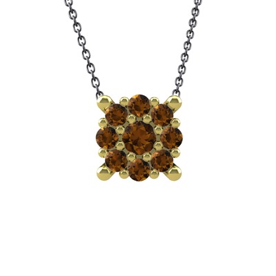 Dumanlı kuvars 18 ayar altın kolye (40 cm gümüş rolo zincir)