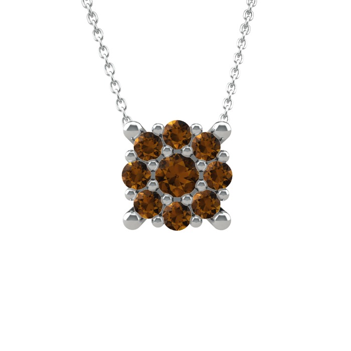 Dumanlı kuvars 18 ayar beyaz altın kolye (40 cm gümüş rolo zincir)