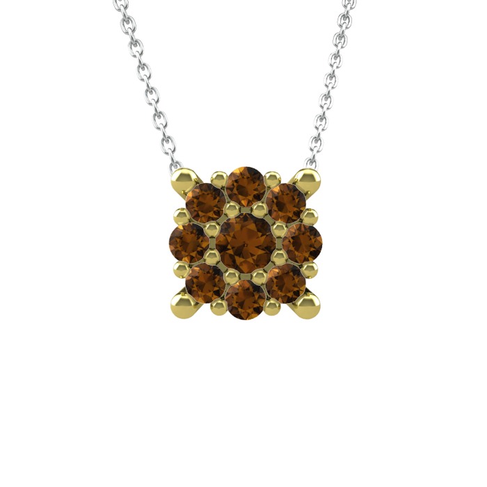 Dumanlı kuvars 925 ayar altın kaplama gümüş kolye (40 cm beyaz altın rolo zincir)