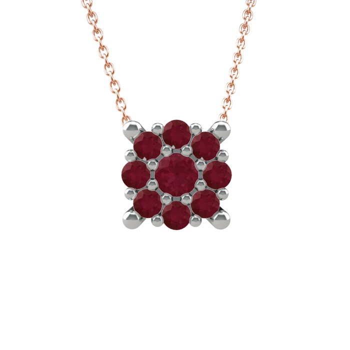 Kök yakut 14 ayar beyaz altın kolye (40 cm rose altın rolo zincir)
