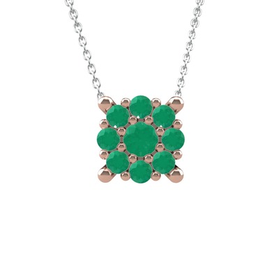 Kök zümrüt 925 ayar rose altın kaplama gümüş kolye (40 cm beyaz altın rolo zincir)
