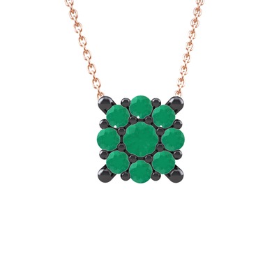 Kök zümrüt 925 ayar siyah rodyum kaplama gümüş kolye (40 cm rose altın rolo zincir)