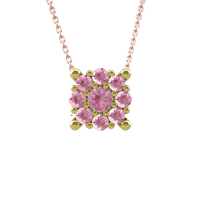 Pembe kuvars 14 ayar altın kolye (40 cm rose altın rolo zincir)