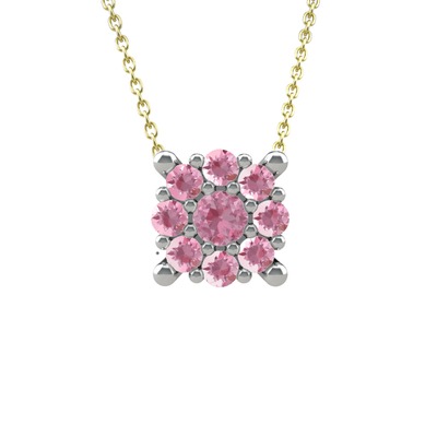 Pembe kuvars 18 ayar beyaz altın kolye (40 cm altın rolo zincir)