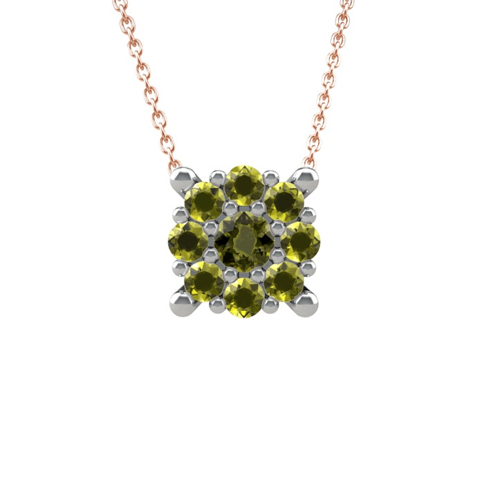 Peridot 14 ayar beyaz altın kolye (40 cm gümüş rolo zincir)