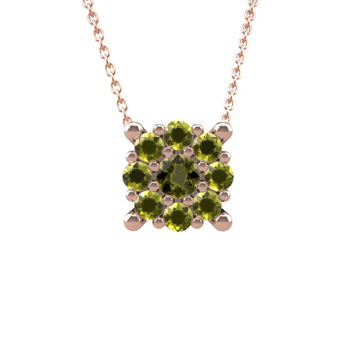 Peridot 18 ayar rose altın kolye (40 cm gümüş rolo zincir)