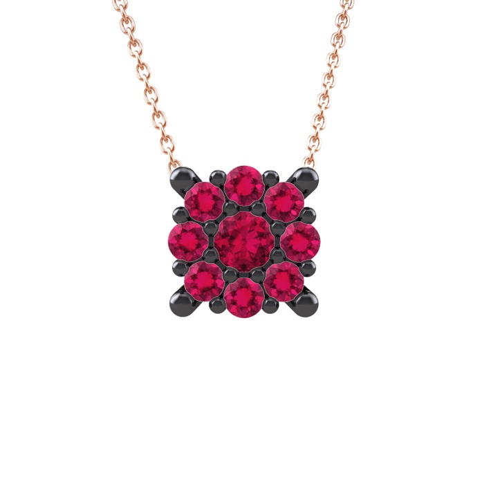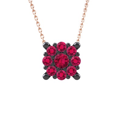 Rodolit garnet 925 ayar siyah rodyum kaplama gümüş kolye (40 cm rose altın rolo zincir)