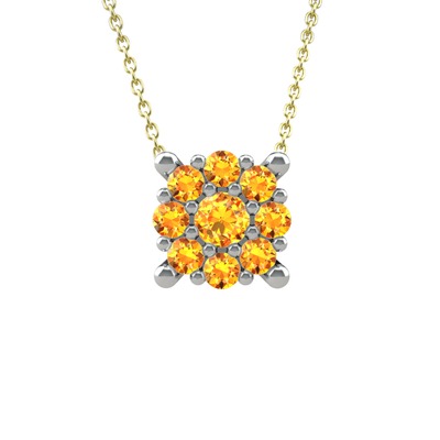 Sitrin 14 ayar beyaz altın kolye (40 cm gümüş rolo zincir)