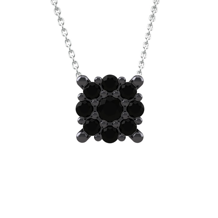 Siyah zirkon 925 ayar siyah rodyum kaplama gümüş kolye (40 cm beyaz altın rolo zincir)