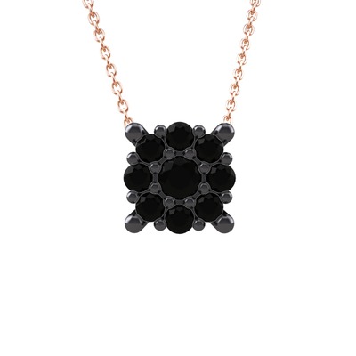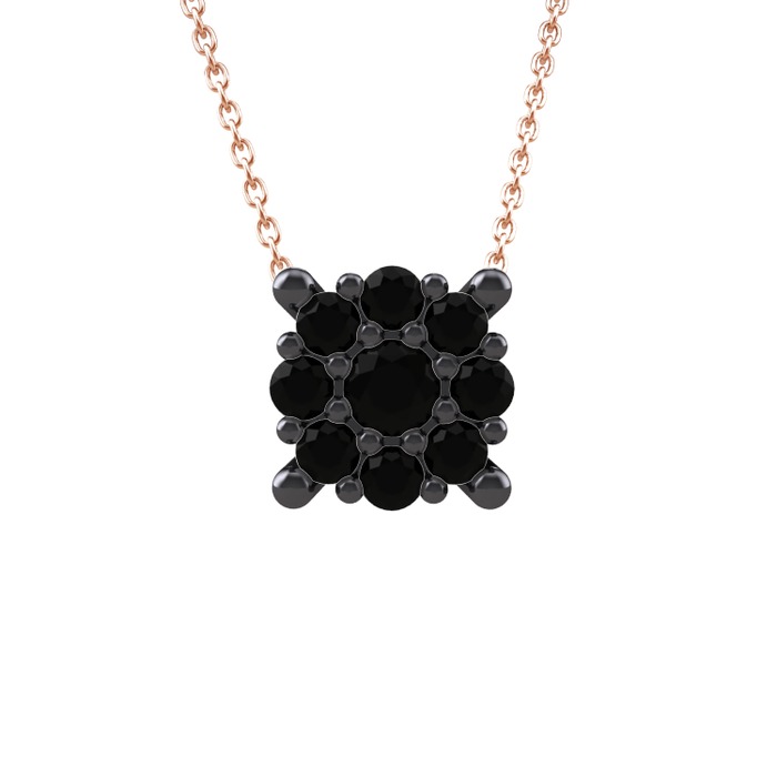Siyah zirkon 925 ayar siyah rodyum kaplama gümüş kolye (40 cm rose altın rolo zincir)