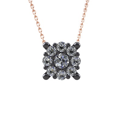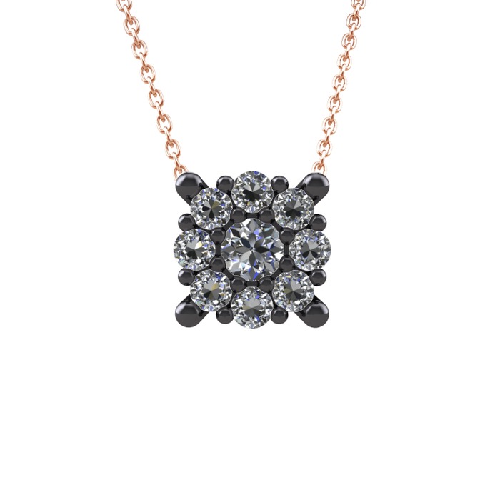 Swarovski 925 ayar siyah rodyum kaplama gümüş kolye (40 cm rose altın rolo zincir)
