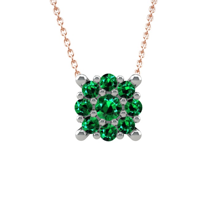 Yeşil kuvars 8 ayar beyaz altın kolye (40 cm rose altın rolo zincir)