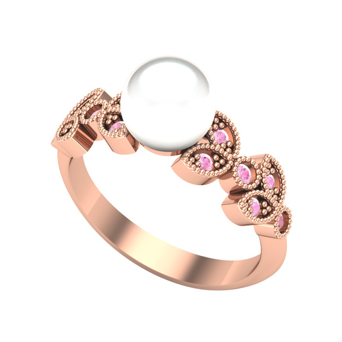 Inci ve pembe kuvars 18 ayar rose altın yüzük