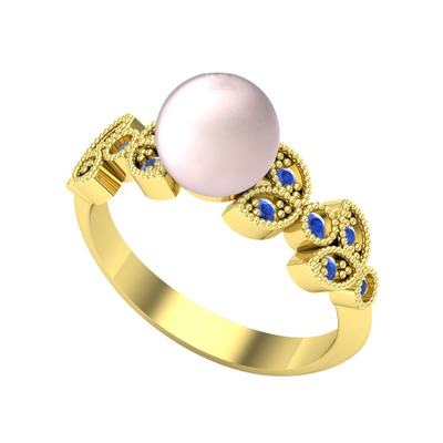 Pembe inci ve lab safir 14 ayar altın yüzük