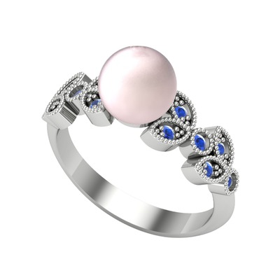 Pembe inci ve lab safir 8 ayar beyaz altın yüzük