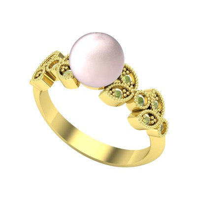 Pembe inci ve peridot 14 ayar altın yüzük