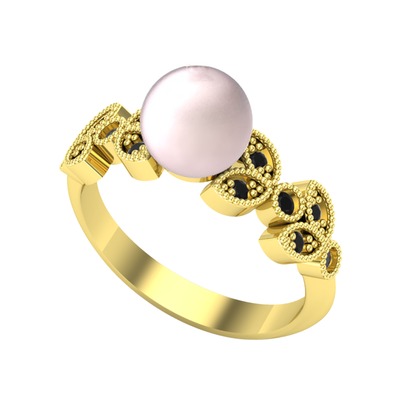 Pembe inci ve siyah zirkon 14 ayar altın yüzük