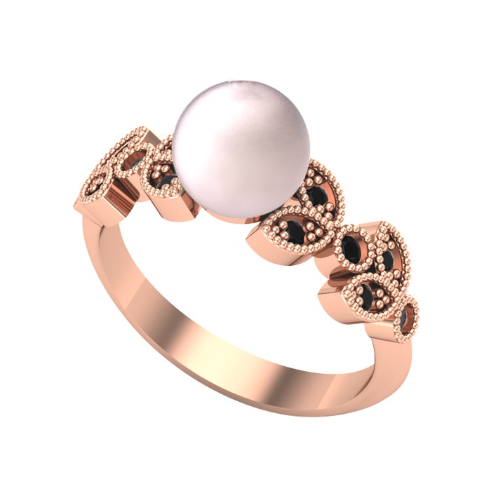 Pembe inci ve siyah zirkon 18 ayar rose altın yüzük