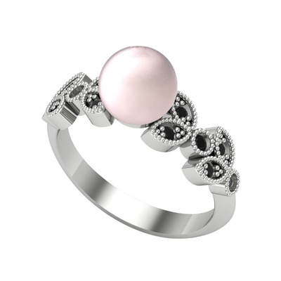 Pembe inci ve siyah zirkon 925 ayar gümüş yüzük