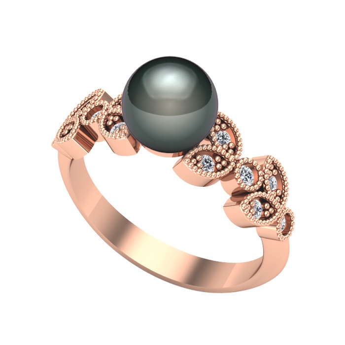 Siyah inci ve beyaz zirkon 8 ayar rose altın yüzük
