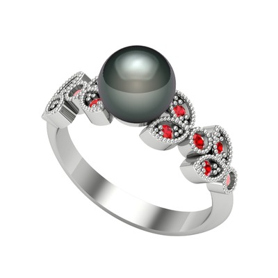 Siyah inci ve garnet 925 ayar gümüş yüzük