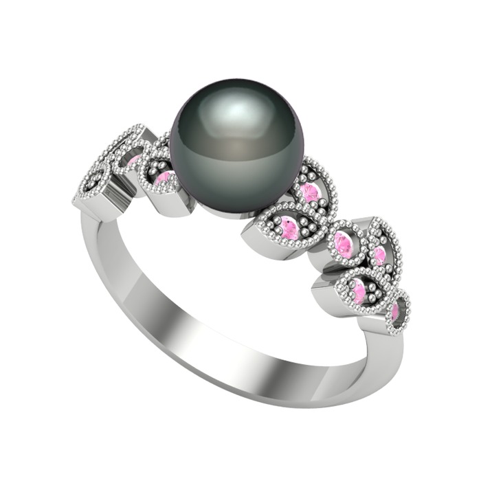 Siyah inci ve pembe kuvars 18 ayar beyaz altın yüzük