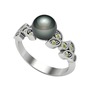 Siyah inci ve peridot 8 ayar beyaz altın yüzük