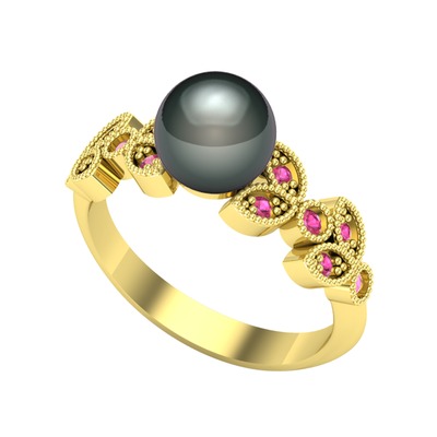 Siyah inci ve rodolit garnet 8 ayar altın yüzük