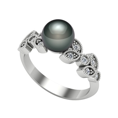 Siyah inci ve swarovski 14 ayar beyaz altın yüzük