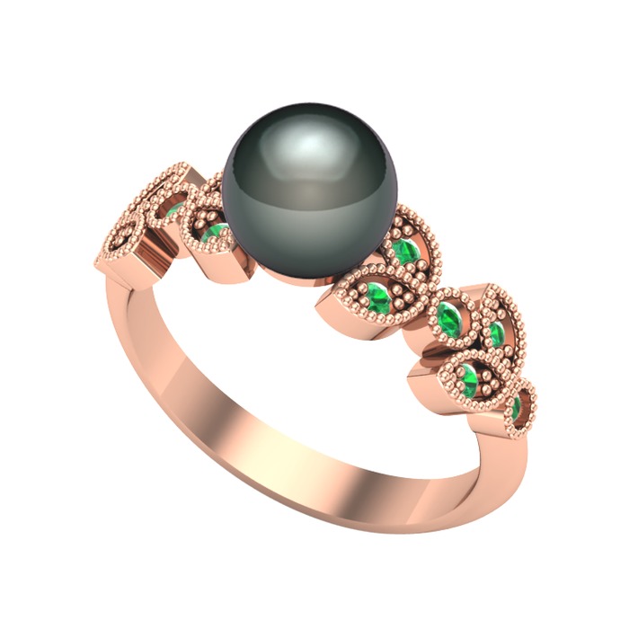 Siyah inci ve yeşil kuvars 8 ayar rose altın yüzük