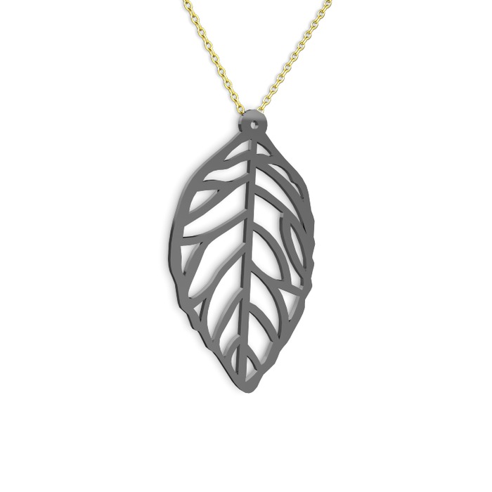 Yaprak Kolye - 925 ayar siyah rodyum kaplama gümüş kolye (40 cm gümüş rolo zincir)
