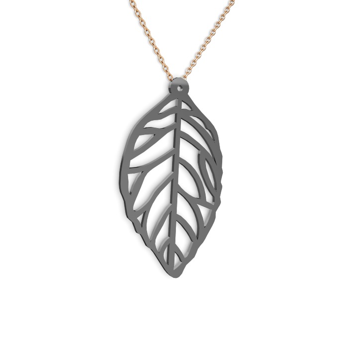 Yaprak Kolye - 925 ayar siyah rodyum kaplama gümüş kolye (40 cm rose altın rolo zincir)