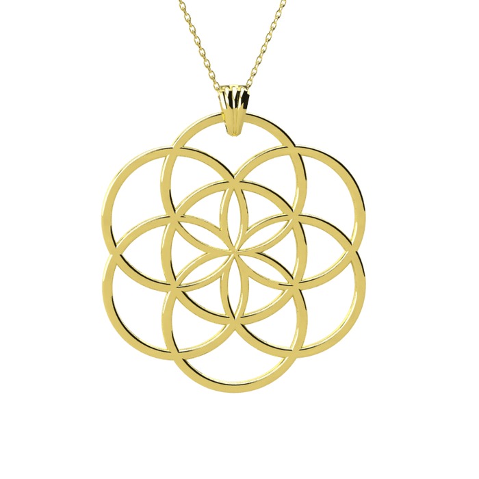 Sacred Geometry koleksiyonumuzun bir parçası olan Yaşam Tohumu (Seed of Life) Kolye, ile farklı tarzınızı ön plana çıkarın. Detaylı Bilgi