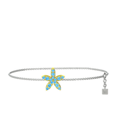 Akuamarin 18 ayar altın bilezik (40 cm gümüş rolo zincir)
