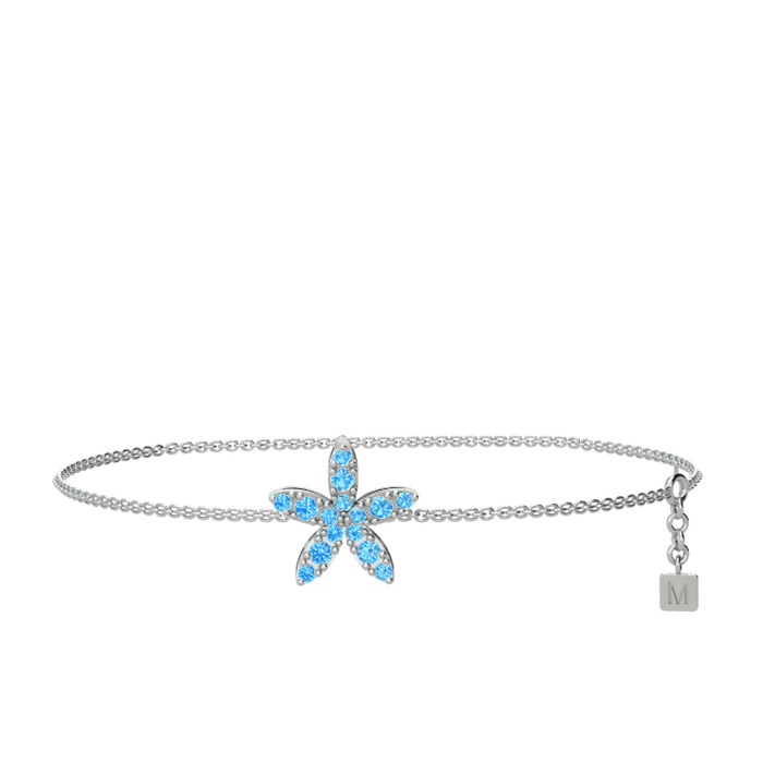 Akuamarin 18 ayar beyaz altın bilezik (40 cm gümüş rolo zincir)