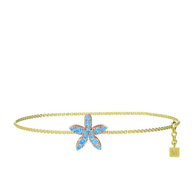 Akuamarin 8 ayar rose altın bilezik (40 cm gümüş rolo zincir)