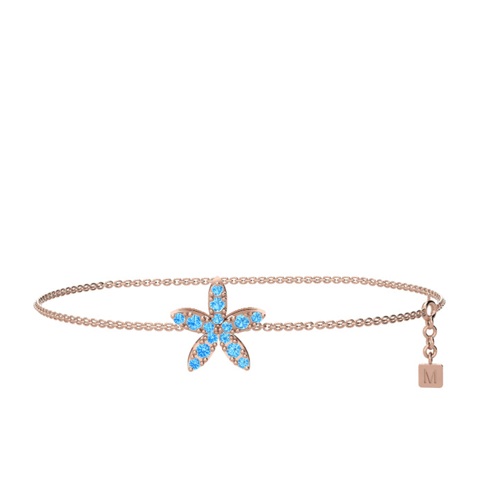 Akuamarin 8 ayar rose altın bilezik (40 cm rose altın rolo zincir)